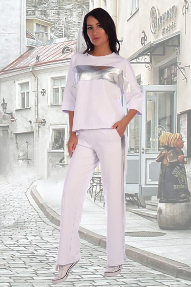 какой он красивый!!! он реально белый, но не просвечивает! серебристые полоски стирку выдержали, ничего не слезло! Спасибо! За такие деньги отличный костюм!!!