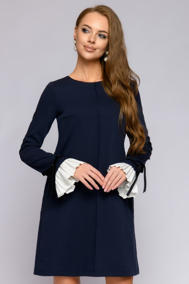 Темно-синее платье с контрастными манжетами 1001 DRESS