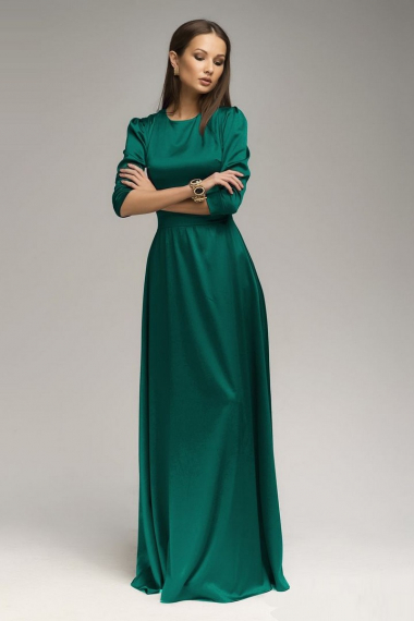 Изумрудное атласное платье с рукавом 3/4 1001 DRESS